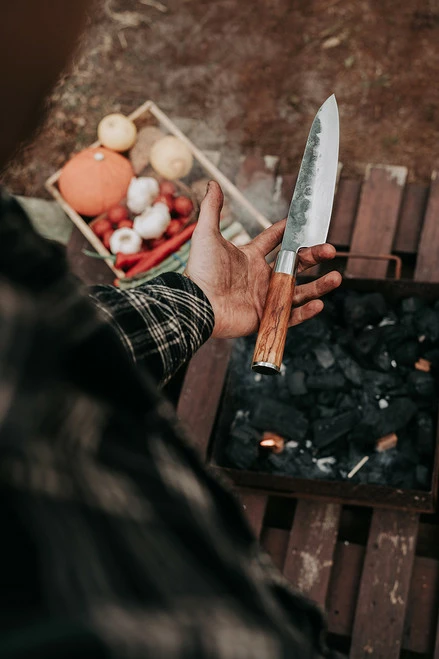 Forged Anvil Knives are full handmade knives from quality steel. The olive wood handle gives a beautiful character to the entire knife. The steel has been hammered by hand which adds to its character and makes for a beautiful knife in the kitchen or outside. Balanced, comfortable and durable. You cannot go wrong with an Anvil Knife!