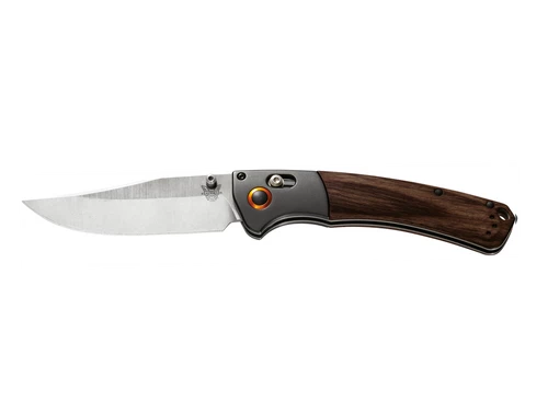 Part of the Benchmade Hunt series, the Benchmade Crooked River Wood (15080-2) is the perfect companion on a hunting trip. Combining a premium CPM-S30V steel blade in a clip point style, the Crooked River has exceptional edge retention and piercing power making hunting chores a breeze. Featuring contoured stabilized wood and aluminum scales, the Crooked River is uniquely accented with vibrant orange pivot rings and an orange G10 backspacer. As an added bonus, the Crooked River opens ambidextrously with the thumbstuds, and locks open with Benchmade’s AXIS lock. Comes with a reversible tip-up pocket clip. The Crooked River Wood is also made in aÂ