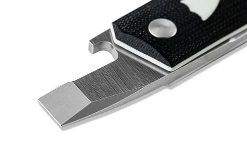 Building upon our partnership with custom designer Jared Oeser, the new 602 Tengu Tool is a multi-faceted friction folder chock-full of detail. Mimicking the styling of the 601 Tengu Flipper, this design is a simple, yet effective option for those looking to carry a unique piece. When closed, the tang of the CPM-20CV tanto blade reveals a bottle opener that can actuate the blade upon deployment. Complete with a black leather carry sleeve, the Tengu Tool is the perfect addition to any EDC rotation.