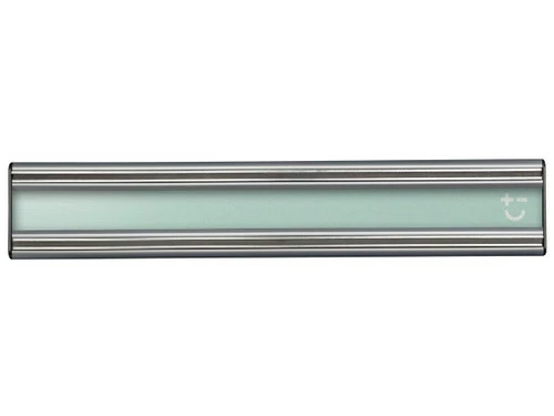 The Bisbell Frosted Green 12″ Magnetic Knife Bar is a simple, space-saving knife rack. Made in a classic silver with a frosted green insert, the two magnetic strips firmly hold your knife collection out of the way at eye-level.