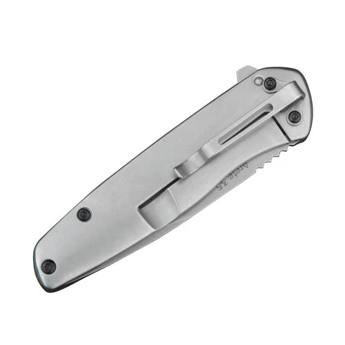 Considered a perfectly sized gentleman’s knife, this limited edition Black Tusk Arete is a convenient and compact length, measuring only 3.5” when closed. Featuring a ground spear-point blade constructed of D2 steel, the Arete opens with a convenient flipper and locks solidly using a frame lock design. The ball bearing system ensures smooth opening, allowing for quick deployment, even one-handed. With a slim, deep carry pocket clip, it rests discreetly in your pocket. This House of Knives 40th anniversary model features a carbon fibre handle and bronze colour backspacer. With only 125 knives produced, this limited edition Arete is a stunning addition to any collection. Also available in , , and .