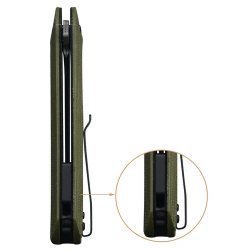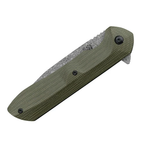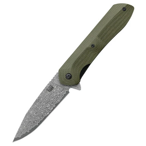 This model features a green Micarta handle and a 69 layer Damascus-clad blade with a 10Cr15CoMoV core