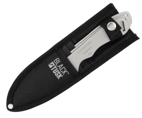 What’s a camping trip without some entertainment? This set of 3 Black Tusk 8 inch stainless steel throwing knives will liven up any kumbaya by the campfire or get-together in the backyard. Weighty and durable, each blade boasts affordable quality that is prepared to endure your every hit and miss while you practice your ninja accuracy. Includes nylon sheath fitted for belt use.