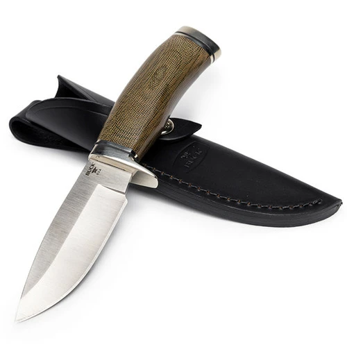 For 2023, the Buck Vanguard gets an upgrade in steel to CPM S35VN and is wrapped in polished green canvas micarta handle, all topped off with a high-polish nickel silver bolster and guard.Â