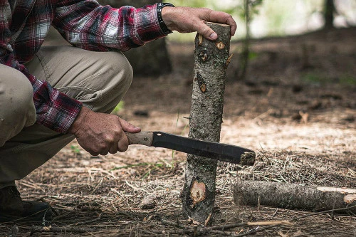 What is the best tool for splitting wood? For camping, we believe that tool is the Buck 108 Compadre Froe. The froe is designed for clearing, heavy chopping, splitting, and batoning. The full tang 5160 spring steel goes throughout the entire 16.75″ froe, giving it excellent shock absorption and strength you can rely on. The 9.5″ cutting edge excels at chopping but also works well for detailed work. Cerakote Cobalt coating gives you added durability and corrosion resistance. The ergonomic handle features natural canvas micarta that provides superior grip, even in wet conditions. The Froe includes a made in the USA, black, genuine leather sheath with a stainless steel attachment ring so you can keep your froe at your side or safely in your pack. The 108 Compadre Froe is the perfect tool for your camping and general outdoor needs.