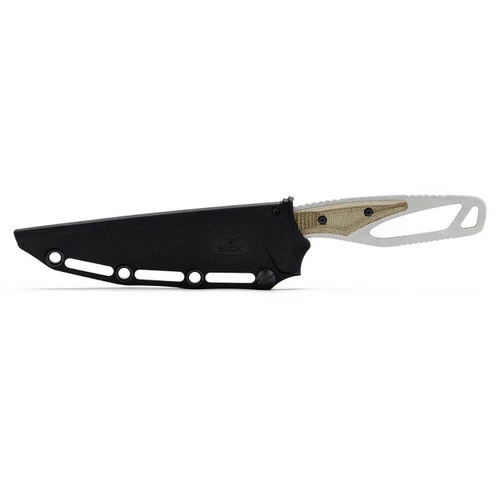 The Buck 636 PakLite Processor Pro hunting knife is designed for processing your game. The lightweight, full tang, skeletal design weighs only 2.82 oz. The boning blade gives this knife great versatility, allowing it to be used for various tasks besides hunting, such as a camping chef’s knife. The minimalist handle gives you added grip and improves ergonomics, but it can also be removed to suit your preference or for easy cleaning. includes a lightweight polypropylene sheath that allows for different carrying methods. The PakLite series is perfect for those looking for a lightweight, minimalistic knife that is as reliable as the come.Â