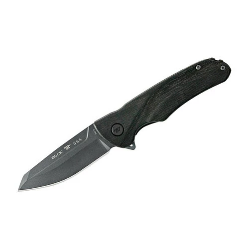 Even the best laid plans require quick reactions and adjustments to changing environments. This all black 843 Sprint Ops knife is ready when you are. A high speed ball bearing flipper makes for fast deployment. The reverse tanto blade shape gives the knife piercing strength while also giving you the smooth cutting surface of a drop point. The blade is S30V steel tempered with Buck’s famous BOS heat treat; the blade has fantastic edge retention. The blade is Cerakote coated to provide further corrosion resistance and durability. The handle is a strong and durable black canvas micarta.Â