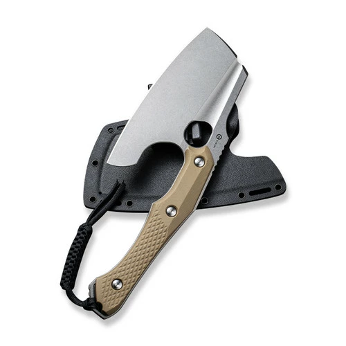 With an eye-catching silhouette and over 8” of cutting edge, the CIVIVI Aratra could be your next favourite fixed blade camping knife. Designed by Maciej Torbe, the Aratra features a generous cleaver blade with plenty of cutting edge for slicing and chopping. The contoured and diamond textured G10 scales provide great grip, and it is easy to wield for its size. It comes with a tied paracord lanyard and black kydex sheath with a Bob Terzuola designed T-Clip.