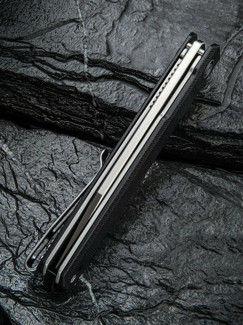Slenderly stylish with a petite profile the CIVIVI Chronic adds sophistication to any EDC collection. The slim hollow ground clip point blade is made from satin-finished 9Cr18MoV stainless steel and deploys quickly and easily thanks to the caged steel bearings in the pivot. While the blade doesn’t seem overwhelming, it makes quick work of slicing tasks. The narrow, broom-like handle accommodates many different grips and the subtle texturing of the G10 scales provide a firm and secure grip. The reversible stainless steel pocket clip provides a deep carry and keeps the carry discreet.Â
