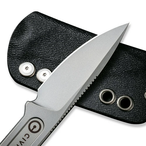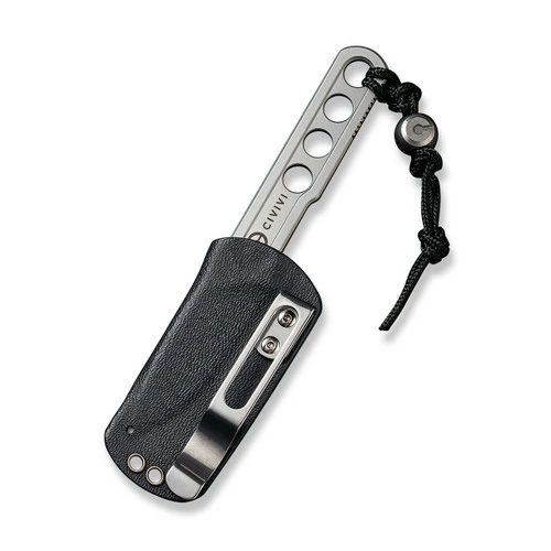 The stonewashed CIVIVI Circulus is a small, skeletonized fixed blade from Ostap Hel. This strong and durable neck knife comes with a kydexsheath, titanium bead chain, and a paracord lanyard for many carry options. Â