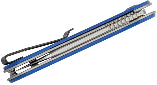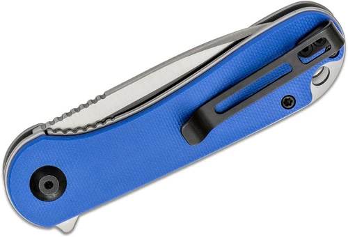 The CIVIVI Elementum is a no-frills, straight down to business utility folding knife and many of its design features pave the way for it to be an excellent EDC blade. These include the thin, ergonomic handle and a very simple utilitarian design. The drop point blade of D2 steel offers dependable blade strength and edge retention and transitions into an ergonomic handle that seems to melt into the hand. The caged ball bearing pivot ensures a smooth and reliable action. The blue G10 scales make for a great aesthetic and sure grip, while the deep carry clip keeps the knife securely attached to your pocket. The Elementum was designed for and is capable of all-day use.