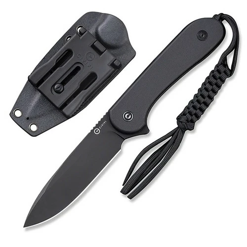 Lightweight and ergonomic, this version features a flat, textured black G10 handle for a sleek, all-black look. The black Kydex sheath includes a Bob Terzuola T-Clip for easy belt carry and CIVIVI’s included a tied paracord lanyard pre-attached to the knife.