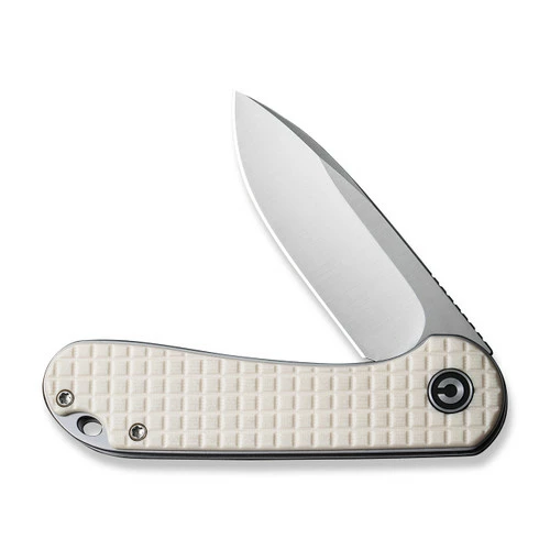This model features a satin finished blade and frag patterned ivory G10 handle. Â