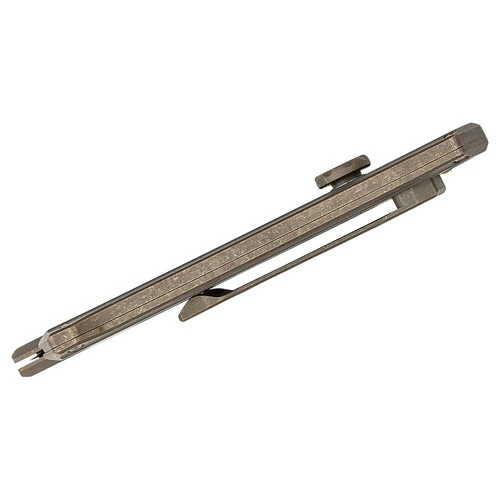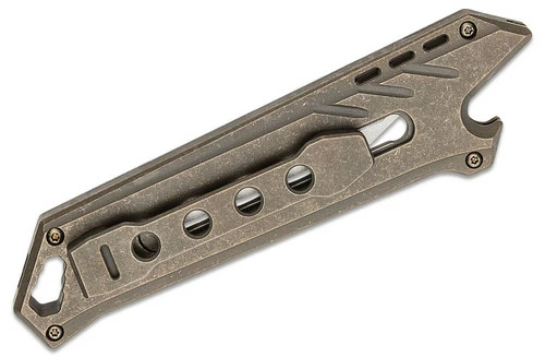 All use no fuss, the diminutive CIVIVI Mandate is a retractable utility knife that includes a bottle opener and a multi-size compatible Hex wrench in the milled titanium handle. The slide button opener and lock makes for easy one-handed use of the 9Cr19MoV blade. The Mandate comes with that blade installed, two additional 9Cr19Mov blades and one Damascus clad for spares.