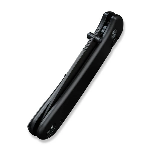 This model features a black stonewashed blade and black aluminum handle. Â