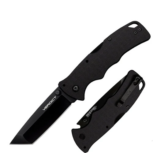 It’s the sum of the parts that make the Cold Steel Tanto Verdict an easy decision to carry. Featuring a 3-inch AUS-10 Japanese stainless steel that’s strong, easily sharpened and holds an edge exceedingly well, this ambidextrous folder also incorporates Cold Steel’s tried and trusted Tri-Ad® lock. The lightweight G10 handle is ergonomically designed for maximum comfort.Â