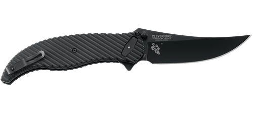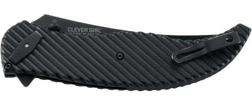 Designed by Austin McGlaun in Columbus, Georgia, the CRKT Clever Girl Folder offers a convenient pocket carry option for the fixed blade of the same name. It is build with a textured G10 handles, stainless steel liners, and the black powder coated upswept D2 blade opens easily and smoothly via flipper. CRKT’s innovative Deadbolt locking mechanism offers rock solid lock up and simple one-hand operation.