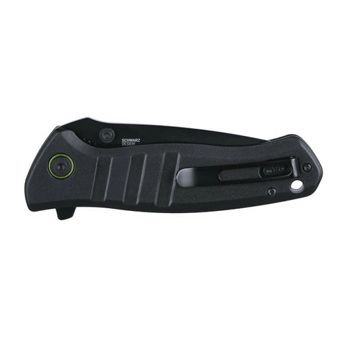 Designer T.J. Schwarz calls the Dextro a cousin to his other black-on-black folder, the Caligo™. Both use lightweight aluminum handles with flippers and liner locks for easy one-handed operation, but the Dextro could be called the more mature of the two. Its blade is made of D2 steel, which provides excellent edge retention so the knife stays sharper, longer. And the black titanium nitride coating isn’t just for a cool, stealthy appearance — it also helps protect the blade from corrosion.