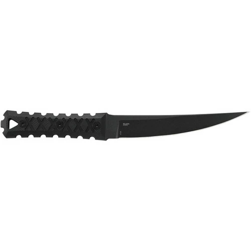 And what’s in its name? The first two initials stand for “hira-zukuri”, while the numerical “6” refer to the mighty 6.5” blade. But its size isn’t the only thing to fear—constructed of tough SK-5 carbon steel, slashing and puncturing comes second nature to the HZ6. Even the knife’s handle pulls from Japanese influence, the handle’s carved x’s representing the traditional wrapping of a sword. But it’s not only for aesthetic purposes—designed for delivering a tremendous grip for cold, wet, gloves or gloveless hands; there’s added durability with each strike and blow. Paired with a well-fitted sheath, utilize the holster’s clip to keep it extra close on your belt, or slip a lanyard through the opening at the base of the handle.