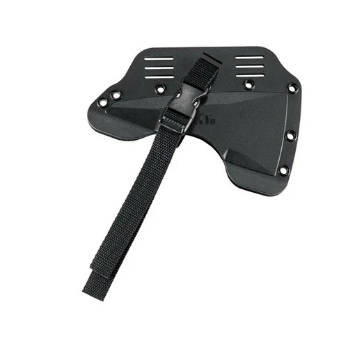 From the windows of his shop in Chattanooga, Tennessee, Ryan Johnson of RMJ Tactical has spotted scores of Carolina Wrens over the years. Colloquially dubbed Jenny Wrens in the area, their long upturned tail inspired the spike on the Jenny Wrenâ„¢ Compact tomahawk. The black-coated SK5 carbon steel head is built with a long, curved head edge for scraping while the main edge is primed to take a bite out of a branch. The tough, glass-reinforced nylon handle is exceptionally grippy even when the weather takes a turn for the worst. The durable sheath is MOLLE-compatible and easily attaches to packs and car rack systems.