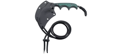 These compact fixed blade neck knives with tough handles come in a variety of different blade styles. In the woods or around the house they feel equally at home.