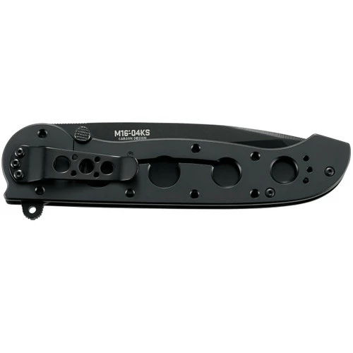 The late Kit Carson designed this and many of his other groundbreaking knives in his shop in Vine Grove, Kentucky. Kit’s lasting legacy comes from his influence on the knife industry—he’s known for popularizing the flipper which is now a household component. Beyond that, he’s also remembered for his esteemed ranking as a Master Sergeant and his high-profile membership in the Cutlery Hall of Fame. The M16®-04KS keeps all we love of Kit’s original tactically-inspired everyday carry folding knife and adds a substantial tanto blade complete with a durable black oxide finish. With its hardy frame lock, it’s securely held in place in the midst of whatever job you put in front of it while the stainless steel handle bored with five holes keeps clean and light.