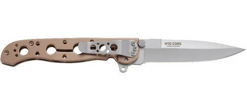 The late Kit Carson designed this and many of his other groundbreaking knives in his shop in Vine Grove, Kentucky. Kit’s lasting legacy is anchored to his ranking as a master sergeant and his high-profile membership in the Cutlery Hall of Fame. The M16®-03BS keeps all we love about Kit’s line of tactical folders and reimagines it as an everyday carry. The versatile spear point blade is built of high-quality Sandvik 12C27™ blade steel for excellent edge retention and has a bead blast finish for supreme durability. It features the same trusty and recognizable handle design but finished with a bronze titanium nitride to elevate the look.
