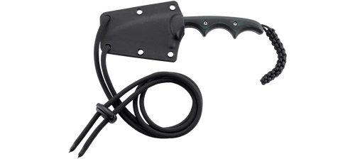 These compact fixed blade neck knives with tough handles come in a variety of different blade styles. In the woods or around the house they feel equally at home.
