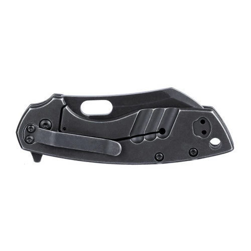 The hardworking blade features a stonewash finish and the strong tip is useful for more detailed tasks. It’s deployed from its stainless steel handle with a thumb slot opening option as well as a flipper mechanism and is secured with a frame lock for your safety.
