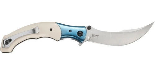 When he sat down at his bench to dream up the Ritualâ„¢, designer Alan Folts of Melbourne, Florida was imagining what a Persian fixed blade would look like if it had evolved over generations and most recently landed in your pocket. This contemporary tactical folder is built with a long, curved blade crafted of strong, edge-holding stainless steel. It folds neatly into the resin-infused fiber handle with a nostalgic stainless steel bolster.