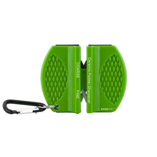 The green EdgeLogix Carbide Pocket Sharpener packs a lot of sharp-making into a very small size. Whether you’re on the boat, up a mountain, or in the back country, you’ll be happy to have this sharpener to give your blade a few quick licks.