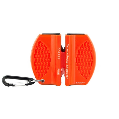 The orange EdgeLogix Carbide Pocket Sharpener packs a lot of sharp-making into a very small size. Whether you’re on the boat, up a mountain, or in the back country, you’ll be happy to have this sharpener to give your blade a few quick licks.