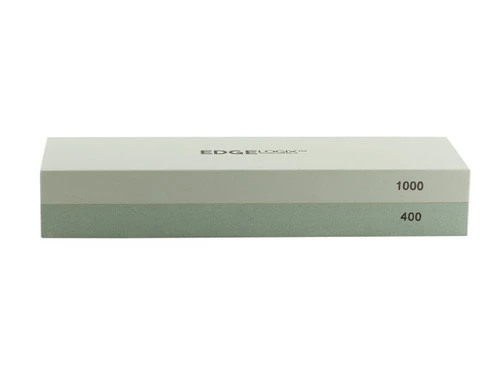 The EdgeLogix Whetstone 6″ Two-Sided Knife Sharpener 400/1000 Grit (15050) is a double-sided silicon carbide 400/1000 grit stone. It’s an ideal size for mid-size kitchen and sporting knives. The 400 grit will re-sharpen dull and damaged knife edges while the 1000 grit will refine the edge to shaving sharpness. It works best when used with water.