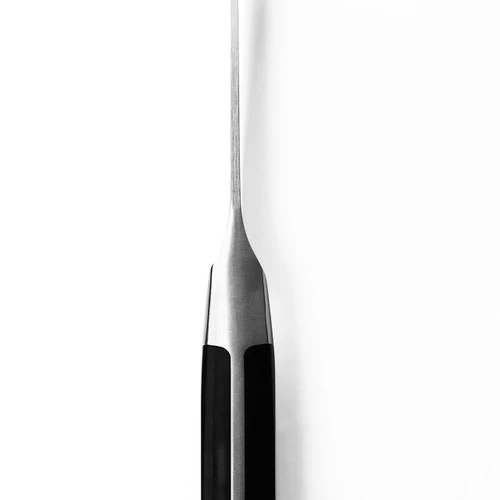 The Fusion Classic line embodies control, quality, and long-lasting dependability. Featuring a German-steel blade of X50CrMoV15 steel, each blade offers excellent edge retention and stain-resistance. The modified bolster is angled to encourage a proper pinch grip on the knife, giving the user mastery over their blade. Designed with an angle bolster for ease of sharpening, the whole blade can be used from tip to heel. An ergonomic, triple-riveted ABS handle encases each knife’s full tang, giving the Fusion Classic substantial strength and heft. The ABS handle is dishwasher safe, but hand-washing is recommended.