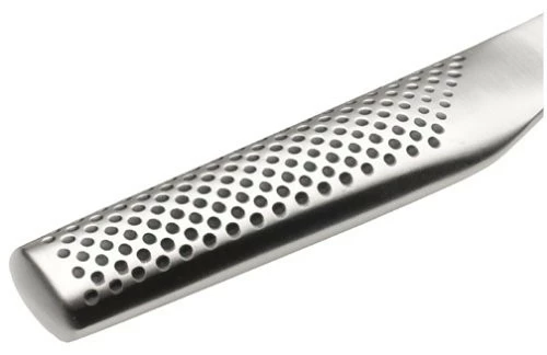 The G series from Global provides an excellent balance between light weight and durability. The nimble stamped construction reduces fatigue and the unique handle shape provides optimal control for chef’s who like to use a pinch grip when slicing and chopping. It also creates a seamless transition from blade to handle making it very easy to just handwash and dry, without worrying about stuck food particles.