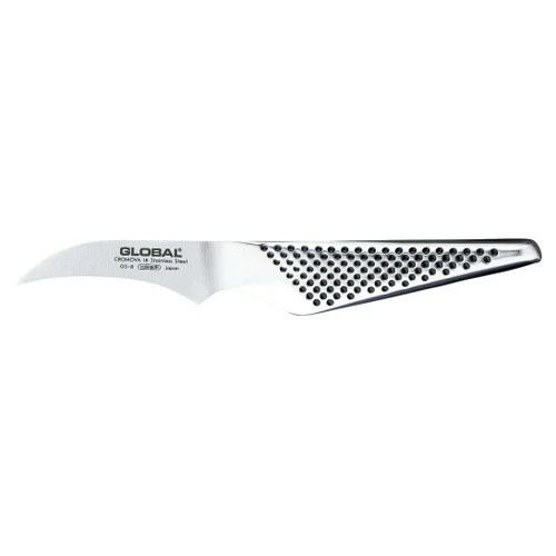 The Global GS8 2.75″ Peeler Knife is ideal or removing skin and blemishes from fruits and vegetables. Great for decorative and detail work. The peeler knife is also used to make a cut known as a tourné cut in vegetables such as carrots. It is a specialized type of paring knife.Â
