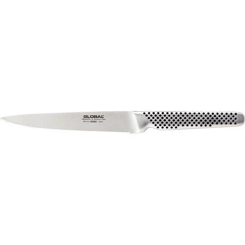 The Global GSF24 6″ Universal Knife is a universal utility knife that has multiple purposes in any kitchen.  The GSF24 has quite a long blade, which makes it useful for slicing and carving meat. Nevertheless an all-round performer which can be used for most kitchen tasks.