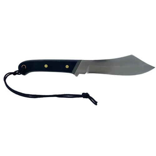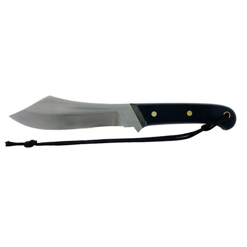 This model features a stainless steel blade and a black linen micarta handle. Micarta is commonly called the “steel of the plastic family” for its strength and durability and is similar to G-10. Composed of layers of linen soaked in resin, it is lightweight yet tough, has a slightly linen textured look but fairly smooth to the touch when finished.