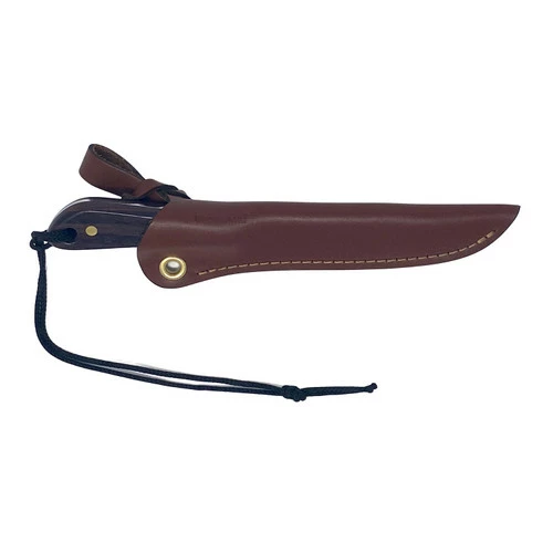 This model features a stainless steel blade with a regular grind and a rosewood handle. Regular “sabre” grind blade comes up about halfway on the blade. Our regular classic grind makes for a thicker, stronger blade, and was designed ideally for hunting and skinning/dressing.