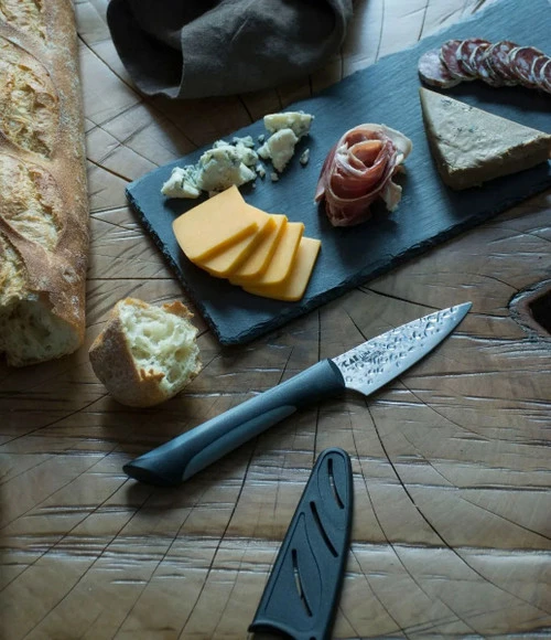 A paring knife is essential for every kitchen. The Kai Luna Paring Knife is the right knife for peeling, coring, and other detail work. With a slightly wider blade than some other paring knives, the Kai Luna Paring Knife is great for working on a cutting board, too. Mince garlic or small herbs quickly and easily as you enjoy this little knife’s sharp performance.