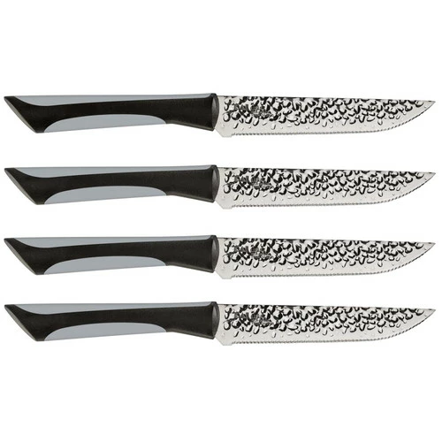 This handsome set of Kai Luna steak knives will let you cut through your steak quickly and easily. You get a set of four razor-sharp knives in an attractive black and grey color scheme; it’s a sophisticated look that will go well with any table décor. The serrated blades stay sharp. Your steak tastes delicious.