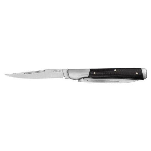 - Unique non-locking slipjoint style; includes clip point and spear point blades
