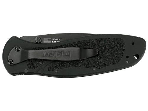 Like all Blurs, the Kershaw Blur Black (1670BLK) is equipped with a big, slightly recurved blade that’s ideal for multitasking. The blade shape offers both excellent slicing and piercing capabilities and the high-performance Sandvik 14C28N stainless blade steel offers corrosion resistance and hardness. The black Blur has a DLC (Diamond-Like Carbon) coated blade for extra corrosion resistance and enhanced looks. Also available with a partially serrated blade as 1670BLKST.