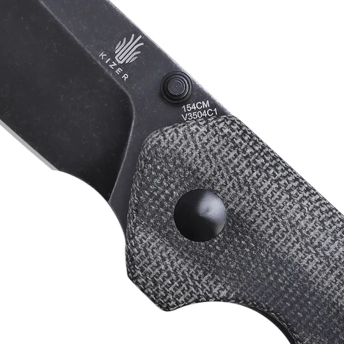 The Kizer Guru designed by Matt Degnan is a reliable everyday carry knife made to tackle cutting tasks of all sorts, whether indoors or out. It features a premium 154CM steel blade with a black finish. The Micarta handles offer excellent grip. Because of the material characteristics, each Micarta handle has a unique pattern and pattern arrangement. Thumb stud opener with ceramic ball bearing pivot rapidly deploys the blade, ensuring a smooth and reliable opening and closing action. Lanyard hole and tip-up carry pocket clip make it convenient to carry.