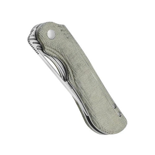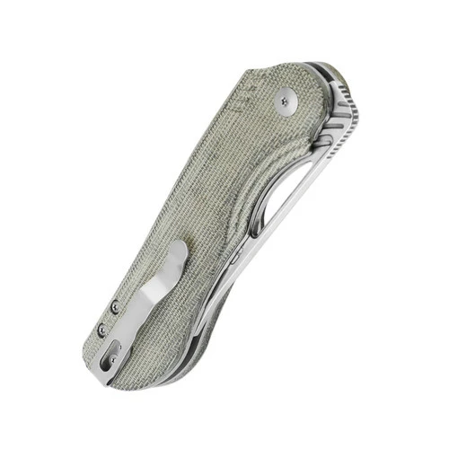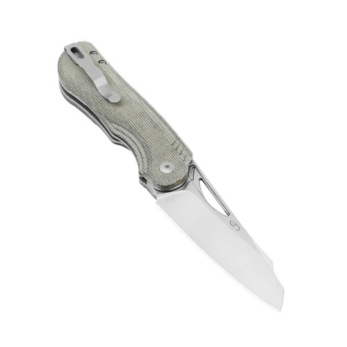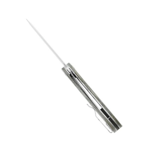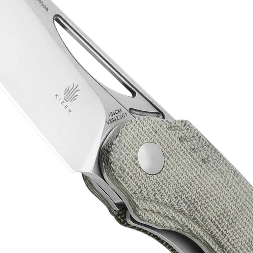 The 2.0 version of the Kizer Kobold is based on the original design but with some upgrades. The increased size increases the front quick opening, adjust the size and shape of the push hole, to ensure the smoothness of the opening. The original version had a frame lock but the 2.0 Kobold features a more secure liner lock. The blade is made of 154cm steel, the handle and sacrum are made of Micarta material, and the tip of the knife back is concave to facilitate cutting-edge operations. The handle gives way to increase and make a curved gradient pattern, which is hand-protected and easy to grasp and grooves are added to the handle and blade, which is beautiful and unique.