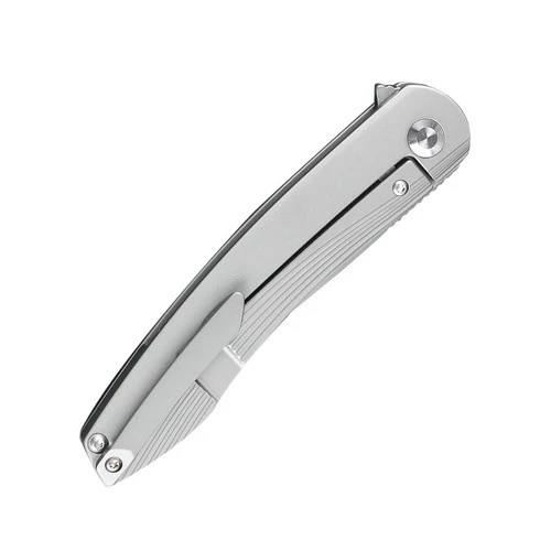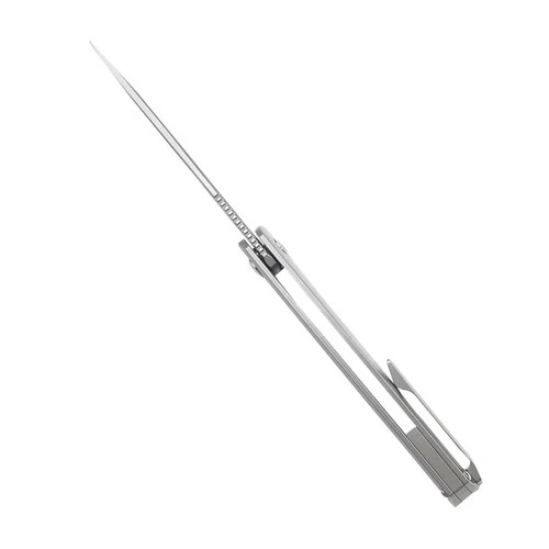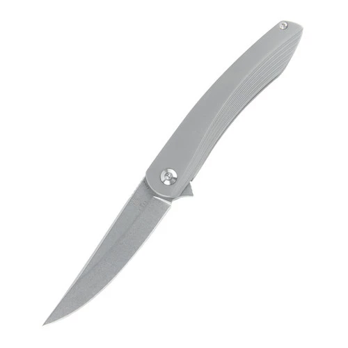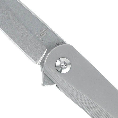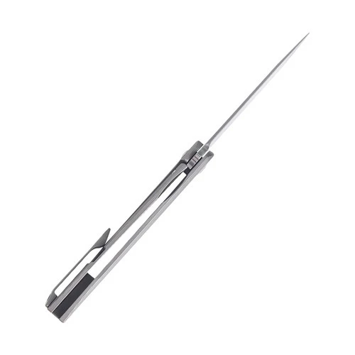 Slender and sinuous, the mid-size Kizer Zen folder by Shence is a truly elegant addition to any everyday carry collection. The stonewashed S35VN trailing point blade seamlessly flows to the wave-like handle of bead-blasted titanium decorated with milled line patterned scales. The small flipper makes this slim and lightweight knife as easy to use as it is on the eyes.