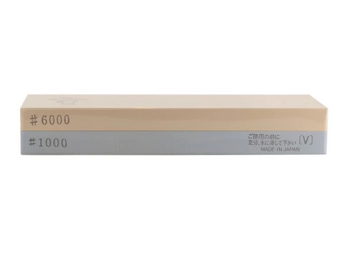 The Kori 7″ Vetrified Aluminum Oxide Whetstone 1000 & 6000 grit is an ideal combination stone used to create and finish a razor-sharp edge. Use the coarser side (1000 grit) to create a new edge by removing material. Once done, use the finer side (6000 grit) to refine, hone, and polish the edge. This Japanese waterstone needs to be soaked in water for several minutes (until the bubbles stop) before use. During use, we recommend splashing or spraying small amounts of water on the stone to keep it wet and create an abrasive slurry.