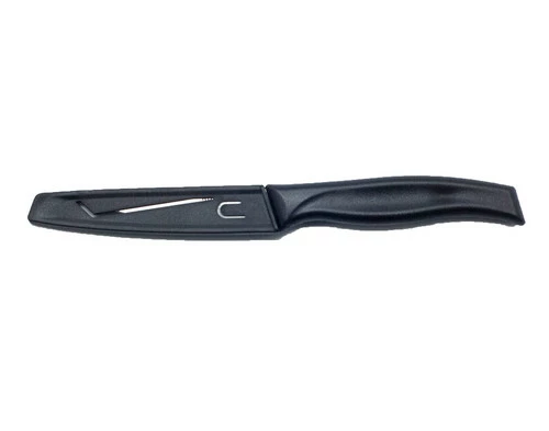 The Kussi 3″ Paring with Sheath is the perfect multi-use knife. An essential in every kitchen, the straight blade easily slices through ingredients, accomplishing small sized tasks quickly and smoothly. The hard sheath lets you store you knife safely in a drawer, where it will protect both the blade and your fingers. Also perfect for picnics, camping, and hiking, the Kussi 3″ Paring transports safely. Dishwasher safe.