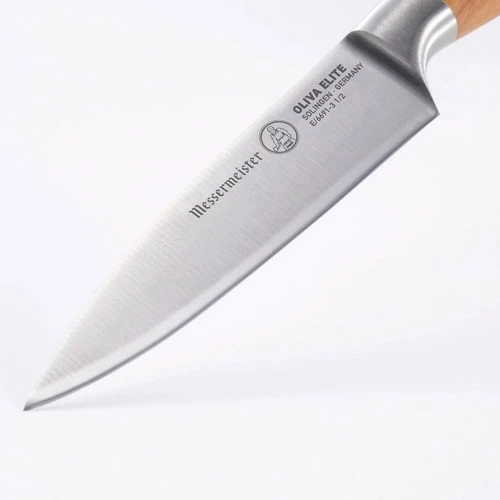 You will find yourself using the Messermeister Oliva Elite 3.5” Paring Knife daily for a variety of tasks requiring accuracy. This knife has a fine-edge blade that is designed to be an all-purpose knife, similar to a chef’s knife, except smaller. The compact blade and molded handle will facilitate trimming, peeling and slicing of produce.