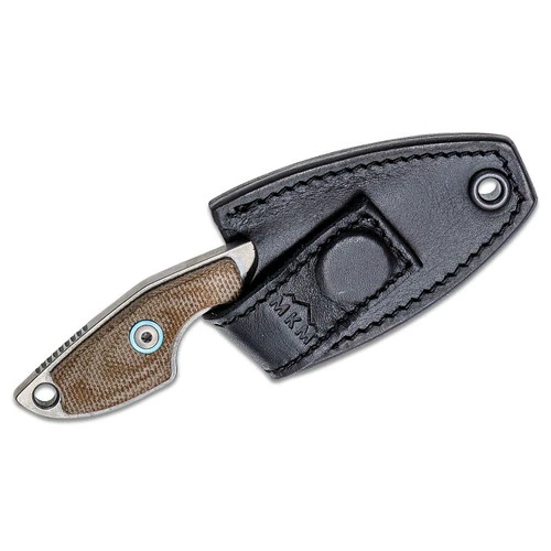 MKM collaborated with custom knife maker, Jesper Voxnaes, to create the Mikro 1. It is a miniature fixed blade knife with multiple carry options, including in the pocket, or as a neck knife. This model was designed by legendary Danish knife maker Jesper Voxnaes, and has a stonewashed Bohler M390 blade and natural micarta handle scales with satin hardware and a blue collar. It comes with a leather sheath with magnetic double closure to carry on neck (with leather cord supplied) or in your pocket.